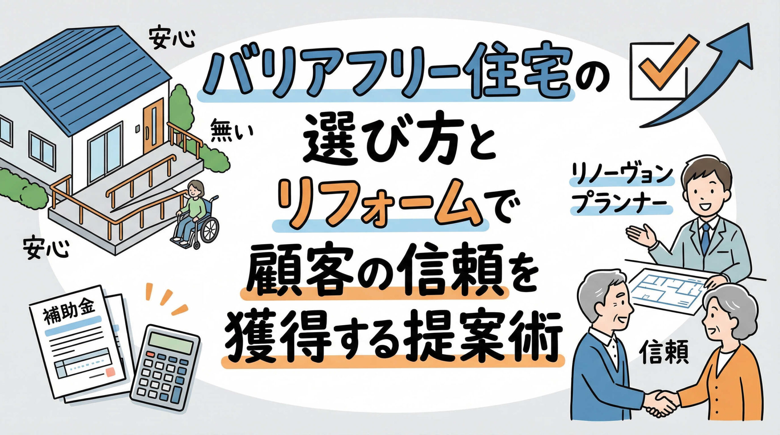 高齢化が進む現代において、顧客から「将来を見据えた住まい探し」や「親御様のためのリフォーム」を相談される機会が増えているのではないでしょうか。バリアフリー住宅の提案は、単に段差をなくすだけではありません。顧客一人ひとりの身体状況や将来の変化を予測し、長く安心して暮らせる環境を整えることが求められます。